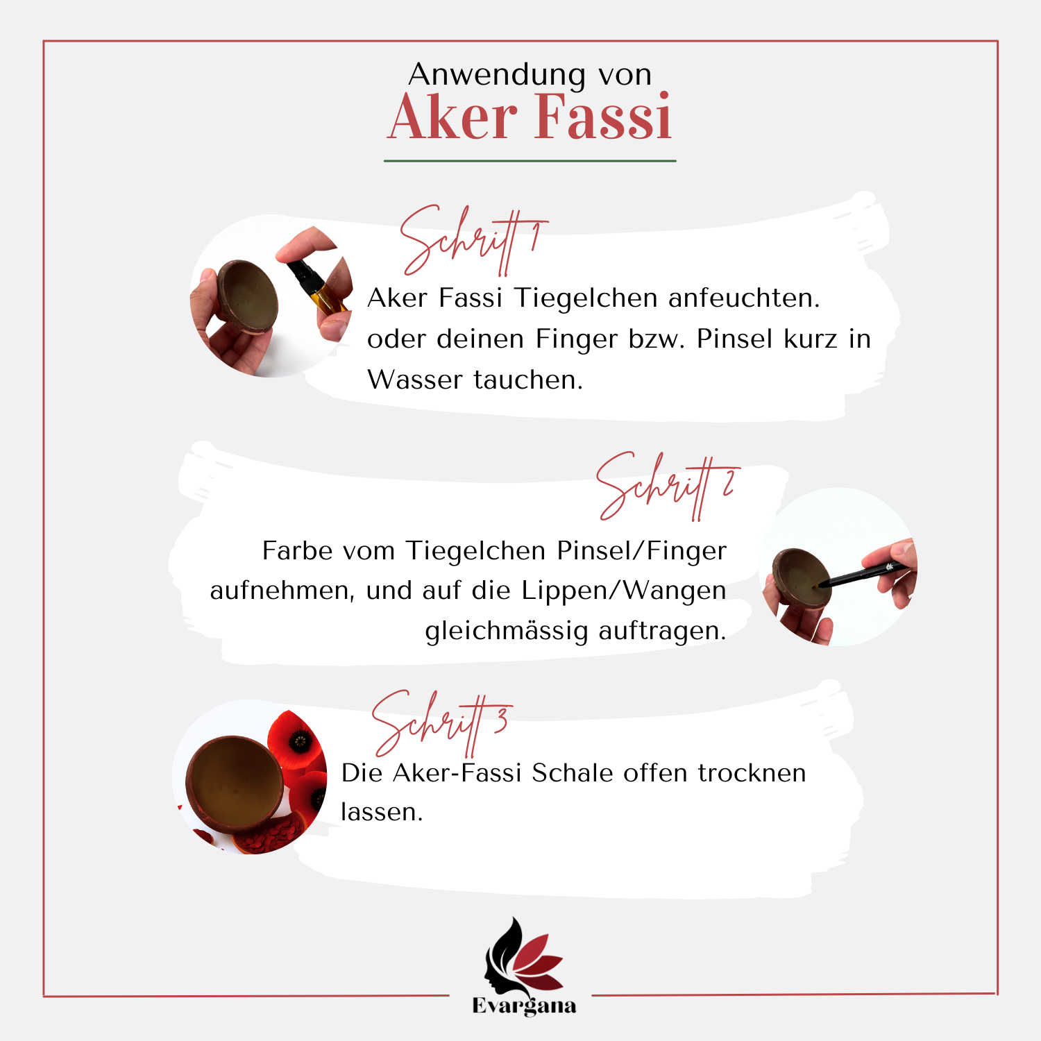 Erlebe ein Stück marokkanischer Schönheitstradition: Aker Fassi – der berühmte Lippen- und Wangenstain aus Mohnblüten und Granatapfelschalen – in einem edlen goldfarbenen Tiegel.