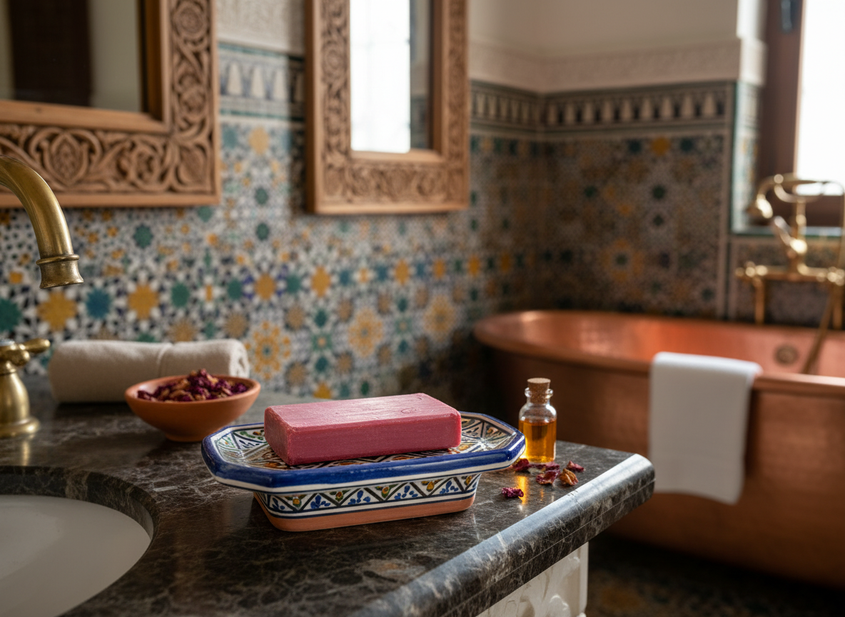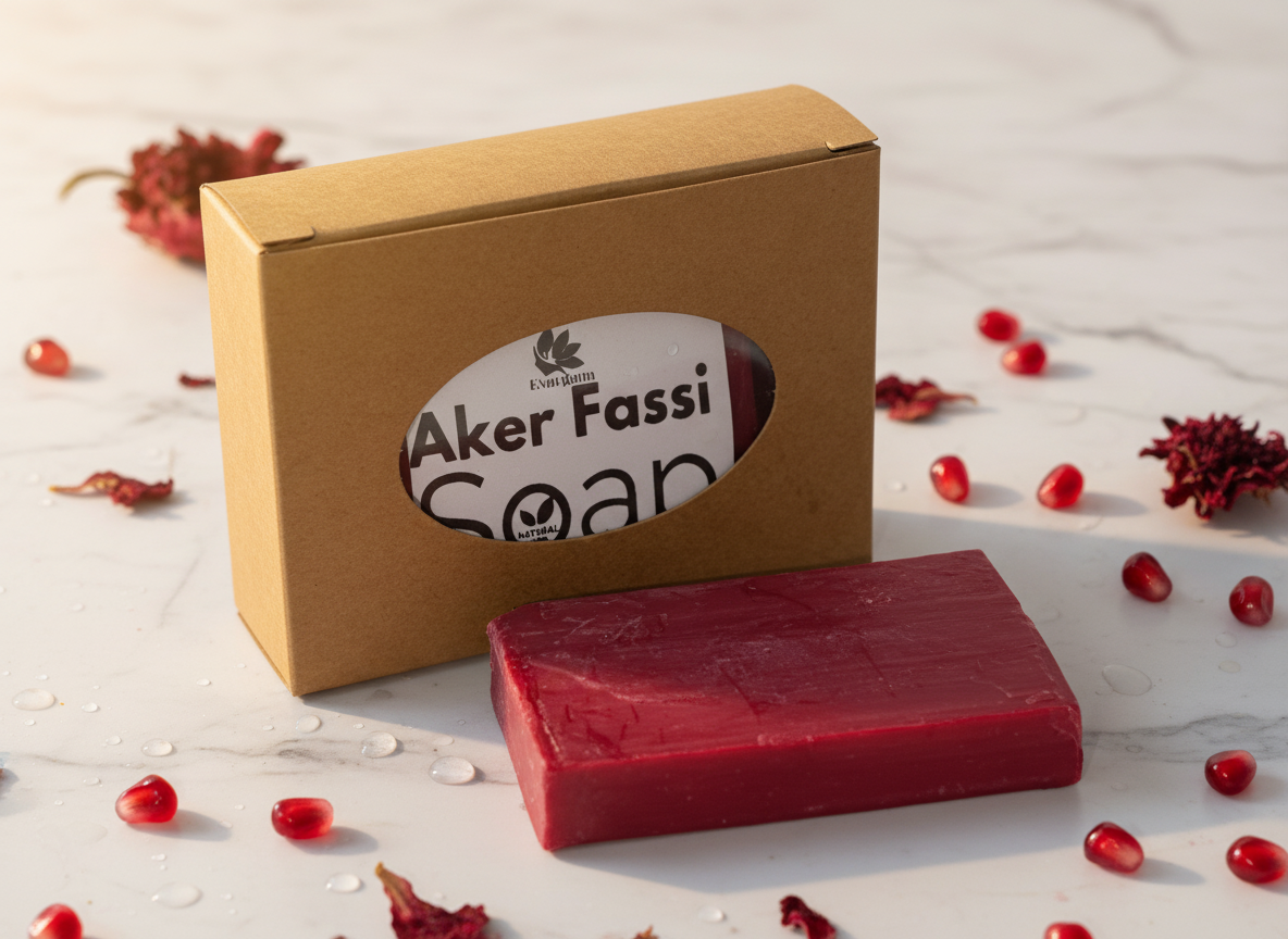 Aker El Fassi Seife ist eine einzigartige marokkanische Schönheitsseife aus Mohnblüten & Granatapfelschale. Traditionell wird Aker El Fassi für natürliche Farbe, Glow und strahlende Haut verwendet – jetzt in praktischer Seifenform.