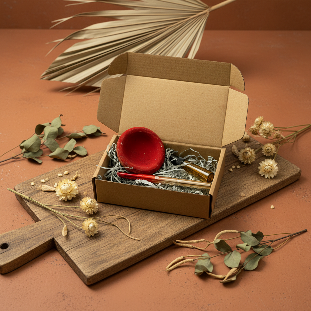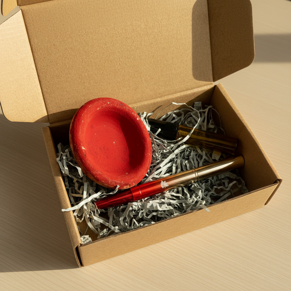 Aker Fassi Beauty Set – Traditionelles Lippen- & Rougepulver inkl. doppelseitigem Lippenpinsel & Rosenwasser
