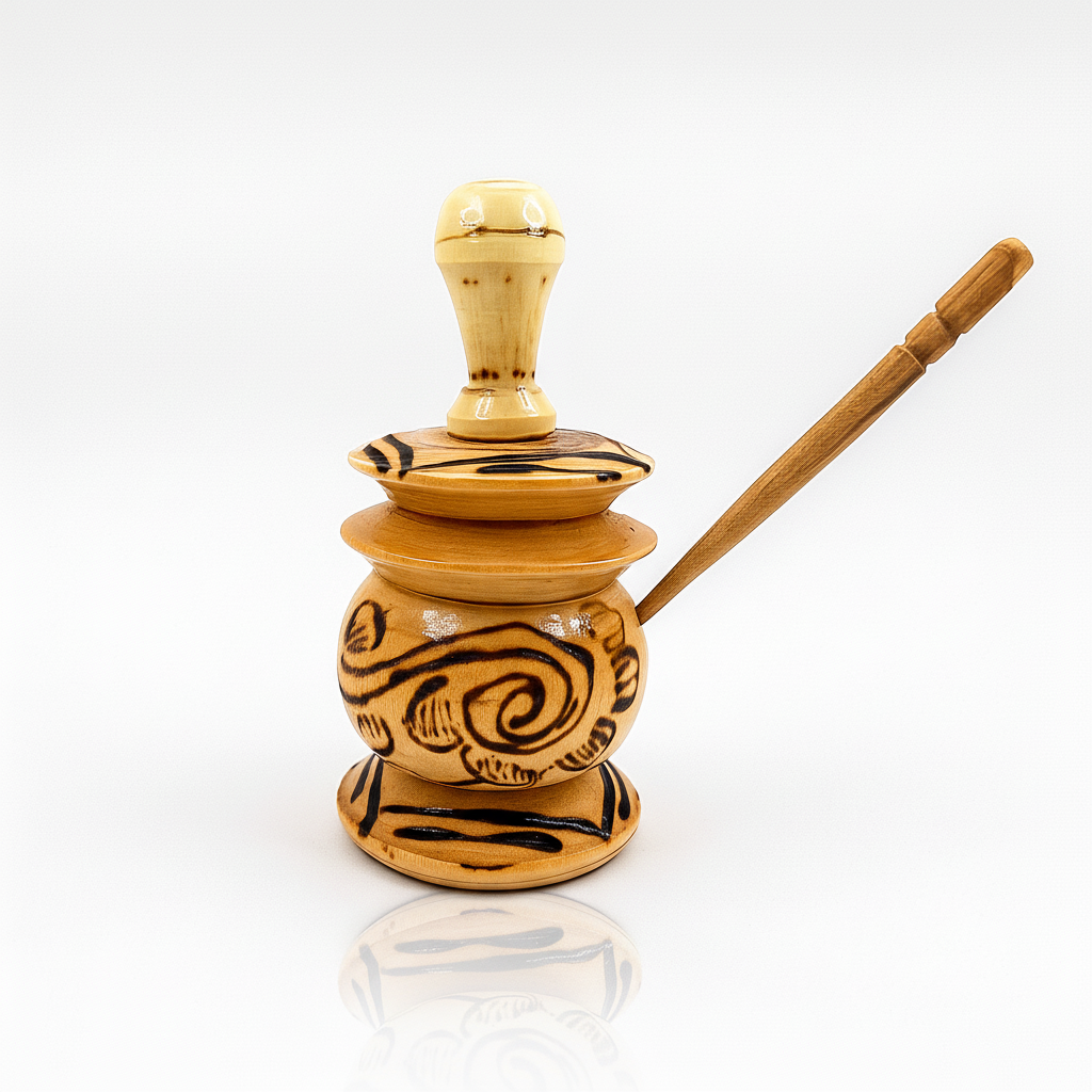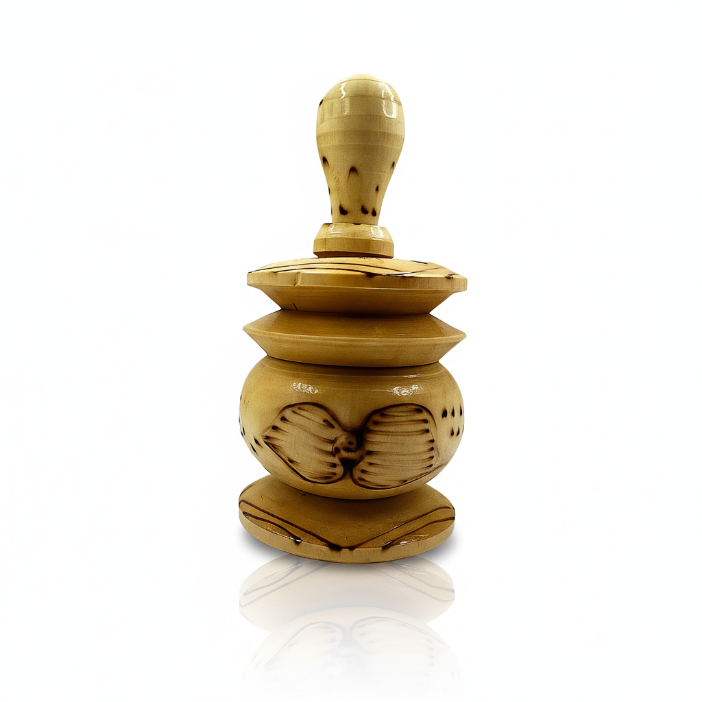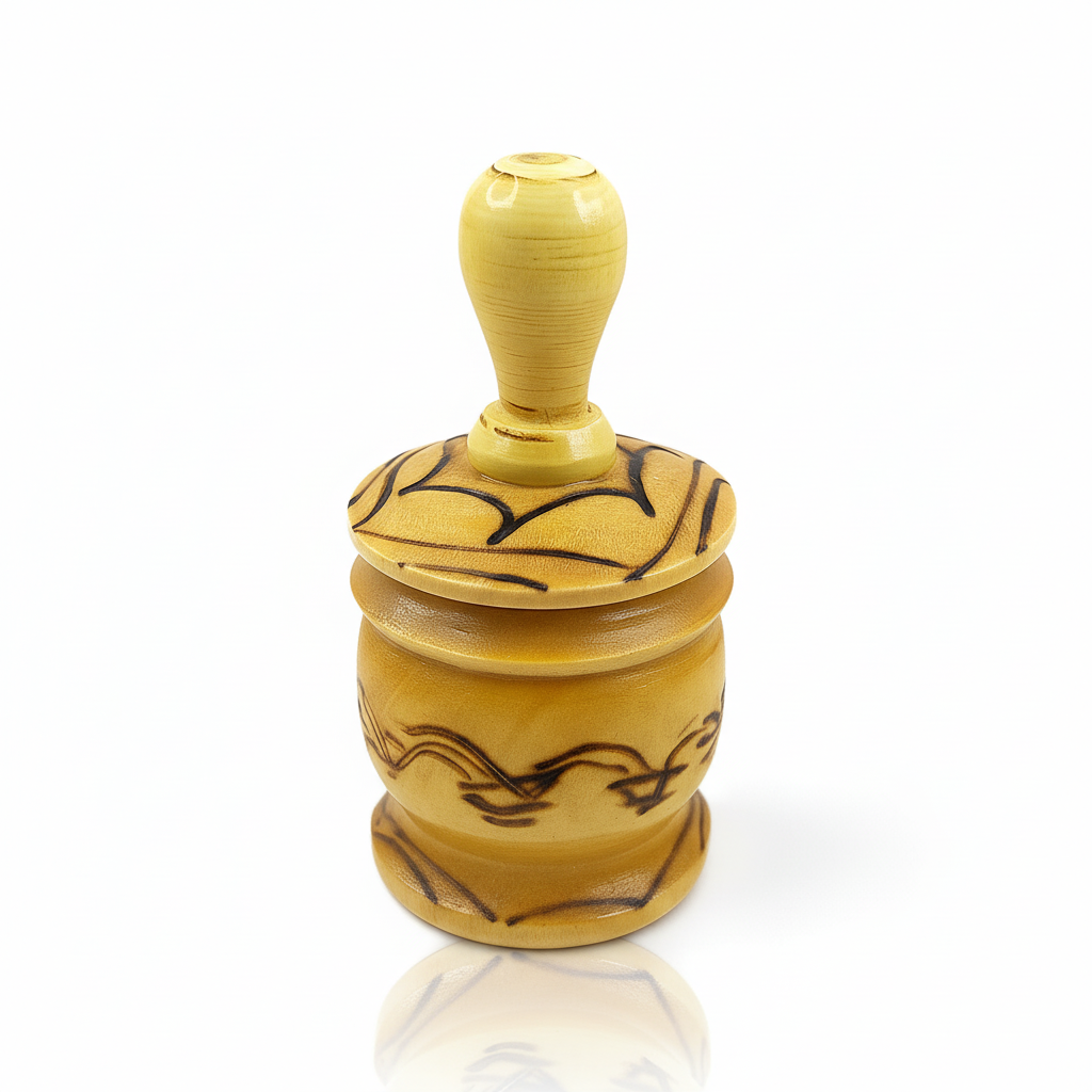 Handgefertigter Khol-Behälter aus Holz, kunstvoll verziert